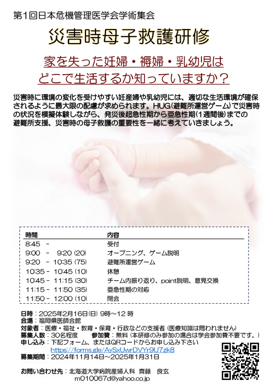 ※非学会員で災害時母子救護研修のみを受講する場合、学会参加費は不要です
